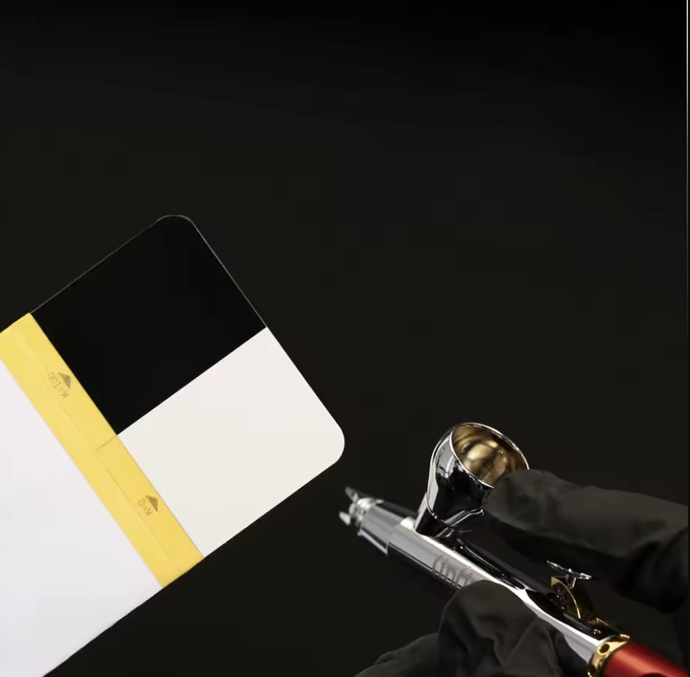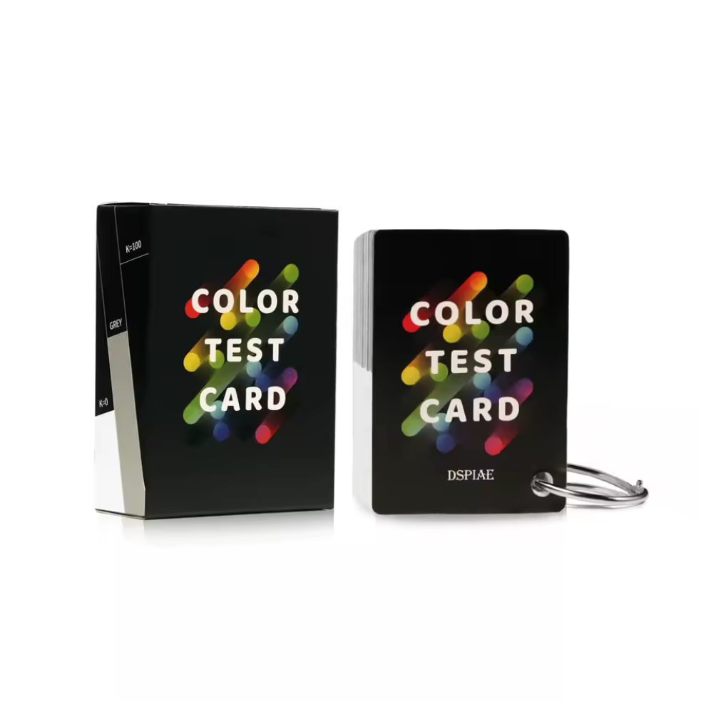 Dette testkortet fra DSPIAE er utformet for modellbyggere og malere som ønsker å teste og dokumentere farger med høy presisjon. Kortet leveres i hendig kortstokk-format og har bakgrunner i svart, grått og hvitt — slik at du kan spraye direkte uten å bruke primer først.