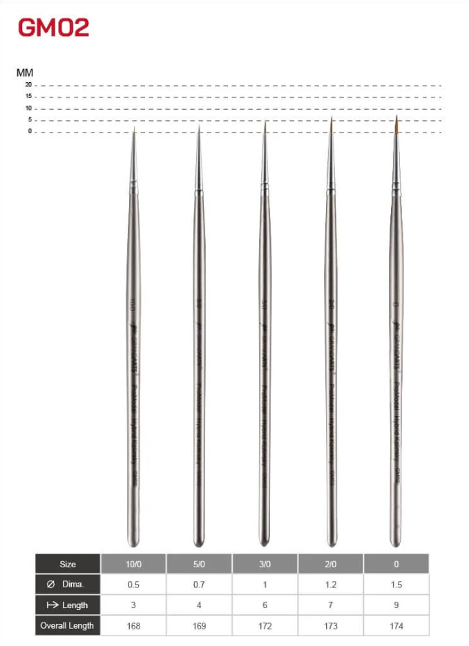 GrandArts x Madworks ProModel Hybrid Kolinsky Paint Brush Set - Pointed (GM-02)