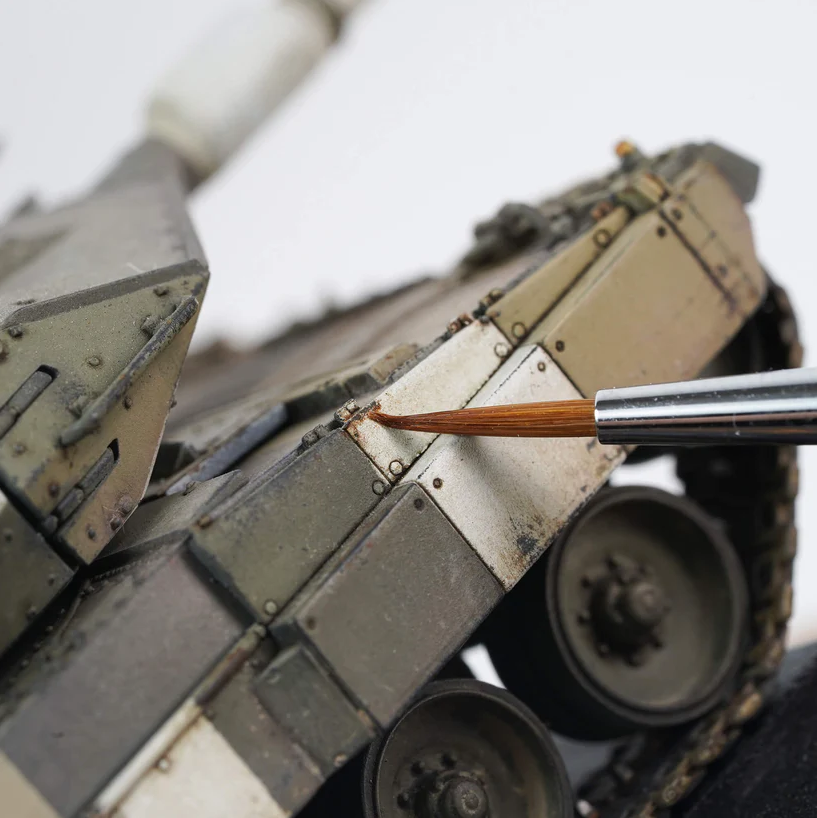 Penselen kombinerer førsteklasses Kolinsky-sobelhår med slitesterke syntetiske fibre for optimal balanse mellom presisjon, kontroll og holdbarhet. Den ultrafine og stabile spissen gir jevn malingsflyt og rene, skarpe linjer – ideelt for lining, highlights og mikrodetaljer.