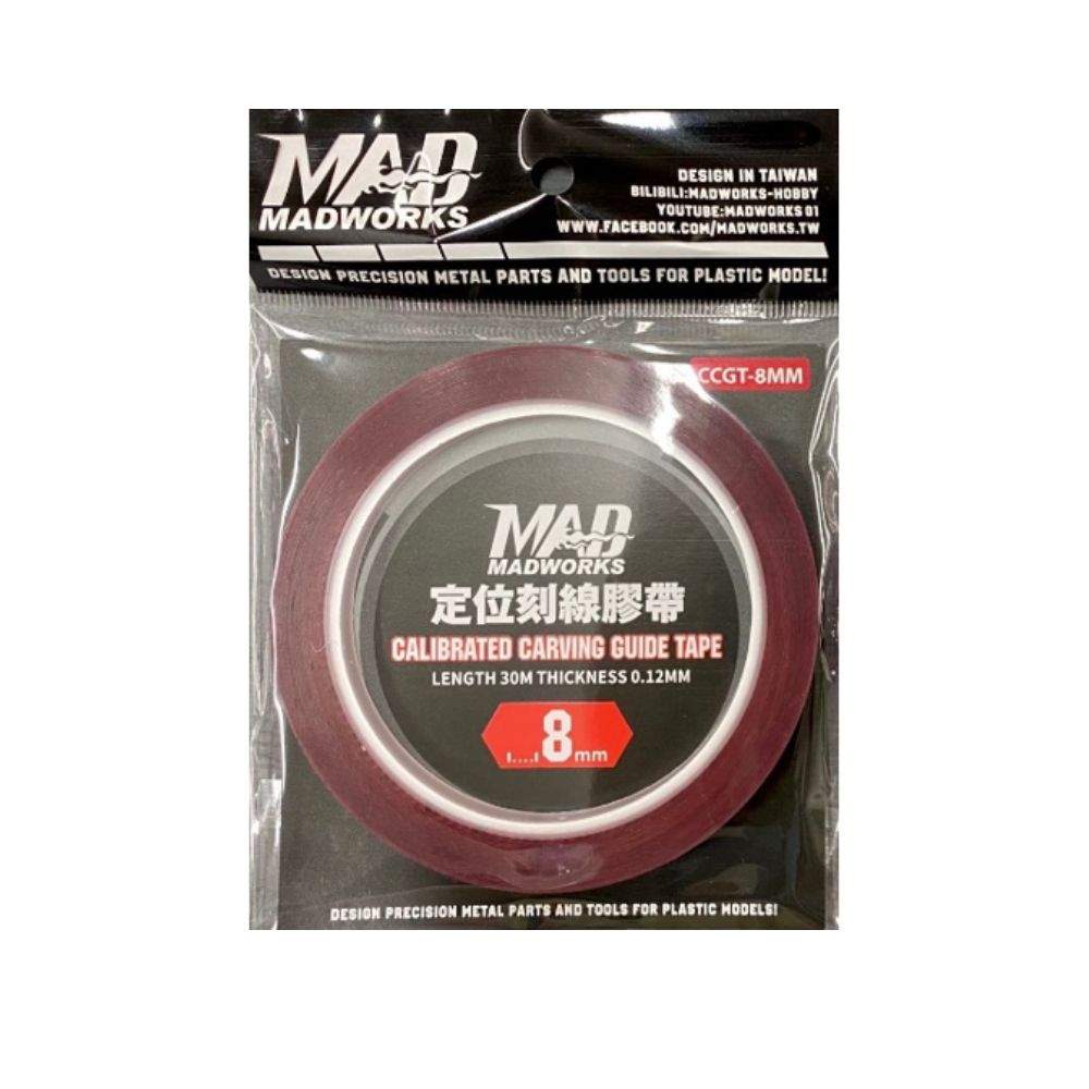 Madworks Calibrated Carving Guide Tape er utviklet for modellbyggere som søker presisjon og effektivitet i scribing-arbeid. Denne semi-transparente tapen har en hard kant og er utstyrt med trykte kalibreringsprikker, noe som gjør det enklere å plassere og justere linjer nøyaktig. Den brede 16 mm utformingen gir stabilitet under bruk, spesielt på buede eller komplekse overflater.
