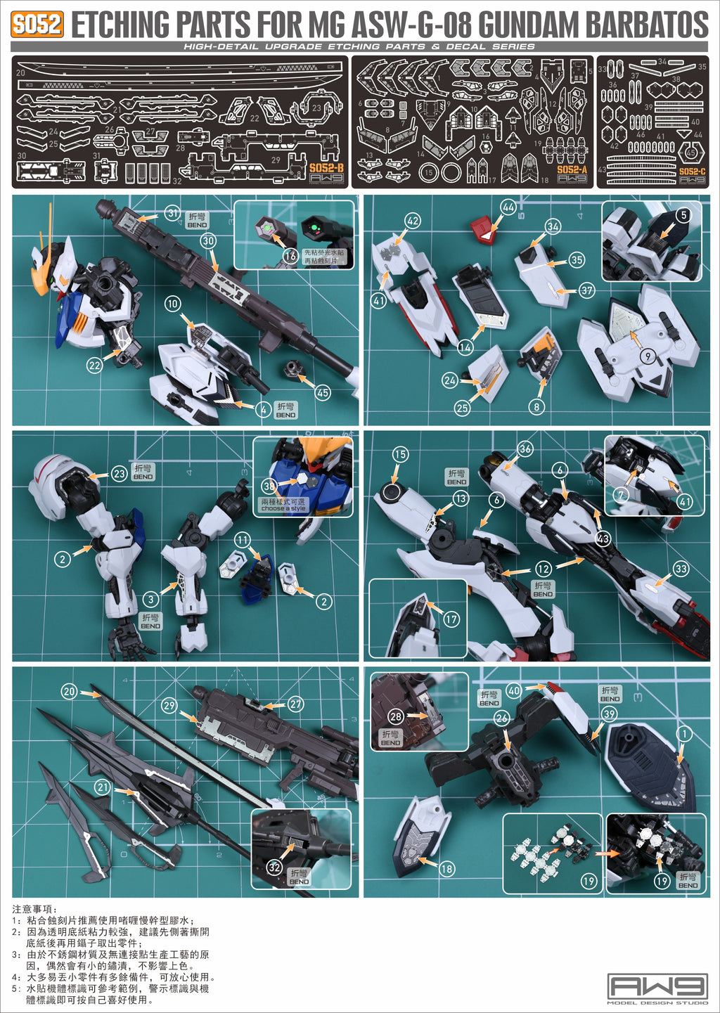MADWORKS Etching Parts -S52- MG Gundam Barbatos + Waterslide Decals
